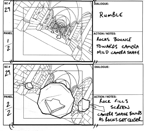 Storyboards are graphic organizers in the form of sketches or images displayed in sequence for the purpose of pre-visualizing a motion picture, animation, motion graphic or interactive media sequence. Storyboards notate camera views/moves, spatial relationships, lighting, process, etc. Each animation project should start with a rough storyboard as a way to begin to organize your ideas. The storyboards will be developed along side each animation.