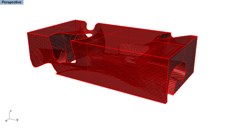 - Joins the geometry into one polysurface by trimming out the interior intersecting spaces