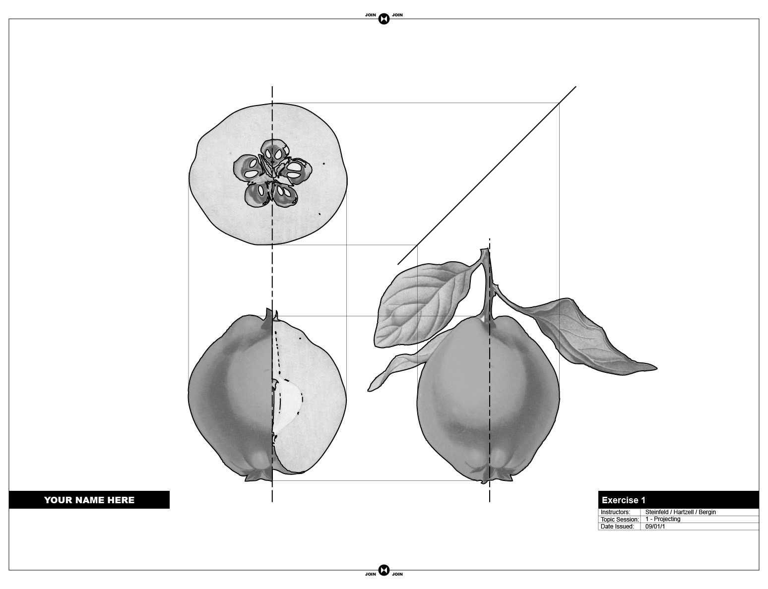 | Strange Fruit introduces students to the general methodological pattern adopted by many studio projects. A short, graphic-intensive warm-up, through this project students will demonstrate basic proficiency in orthographic projection, analytical methods, and design through iteration. | |