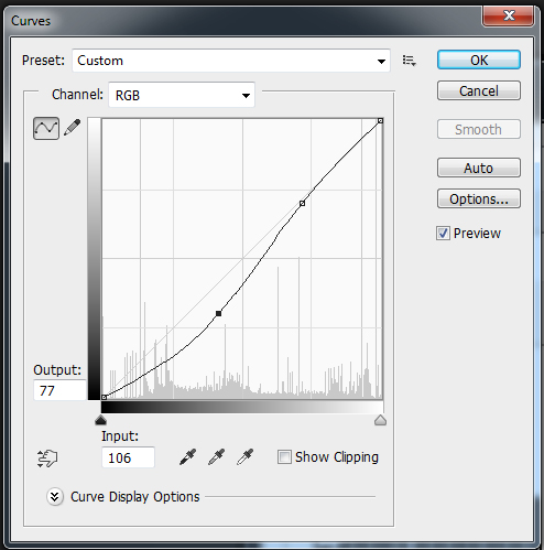 Curves allows for a graphic representation of the levels tool, whereby you can adjust a "curved" path histogram, leveling potential sharp shifts in light values. Image>Adjustments> Curves