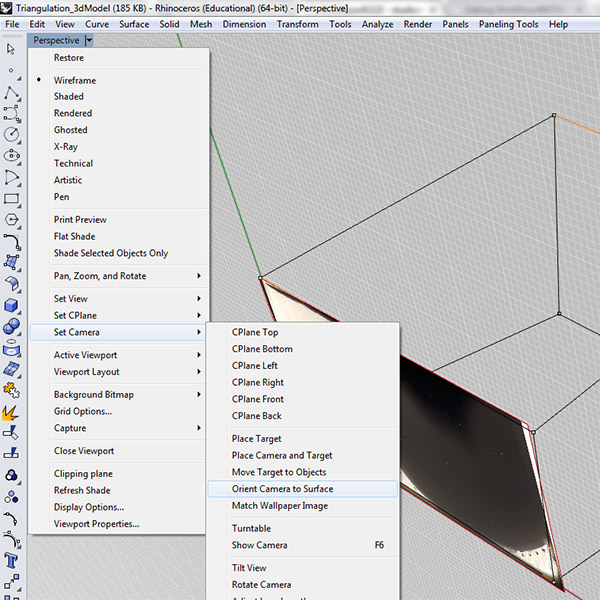 Once you have enough points mapped, you can begin creating a surface from the points. We'll do this using the "3dFace" command in Rhino, connecting the points one triangle face at a time.