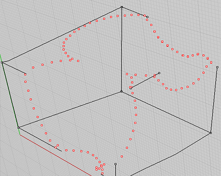 Our model is starting to take shape in rhino, and we can now begin to imagine the curves that describe the edge where each of our concave surfaces meets one of the planar plaster faces. To describe the inner surfaces of each of these concave forms, we'll need to plot more points.